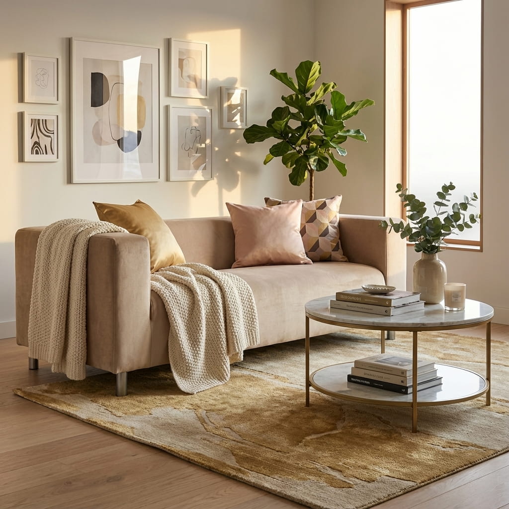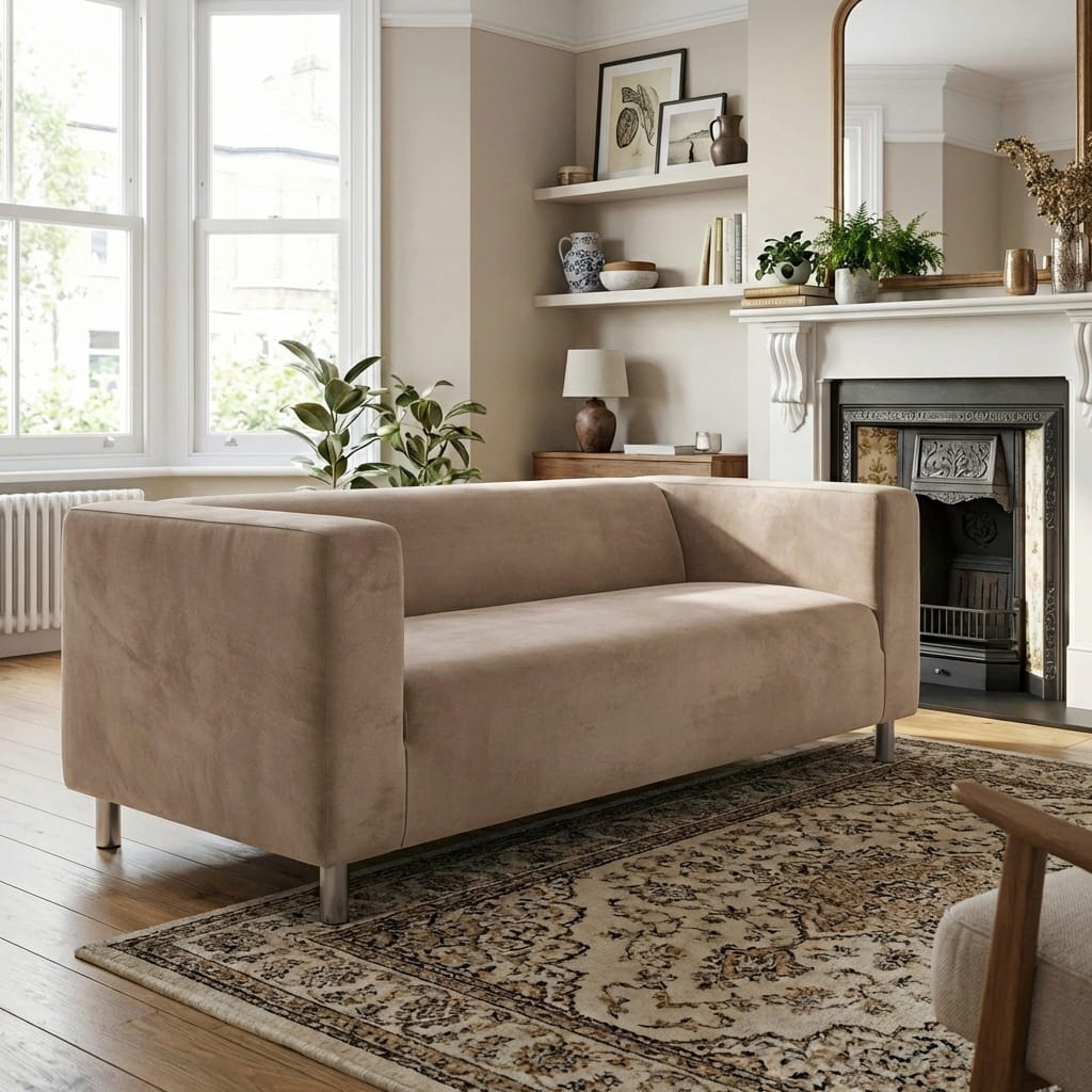Housse de canapé 2 places Ikea Klippan - Tissu en velours pelucheux marron cappuccino